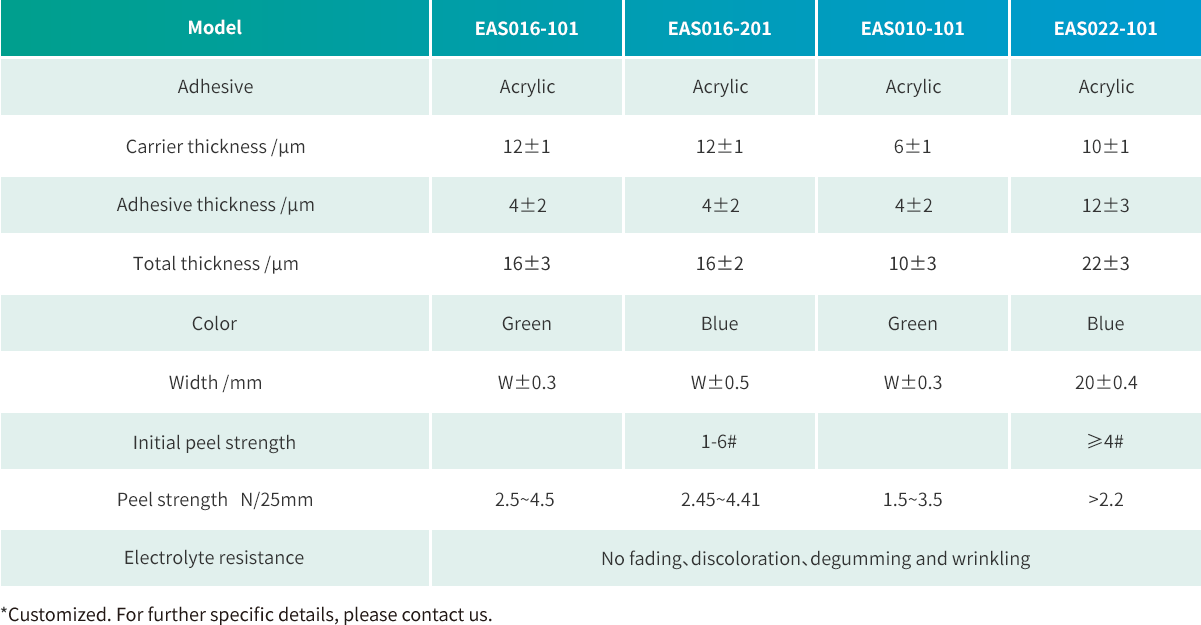 85℃/4h in electrolyte, no fading, no residue