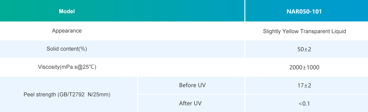 After UV irradiation, no residue when it is removed.